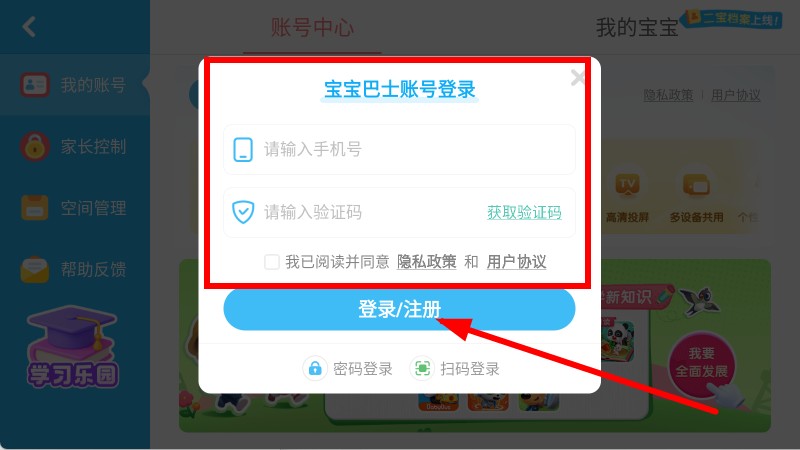 4、在弹窗中输入手机号、验证码,勾选同意协议后点击登录注册,完成账号登录或注册。