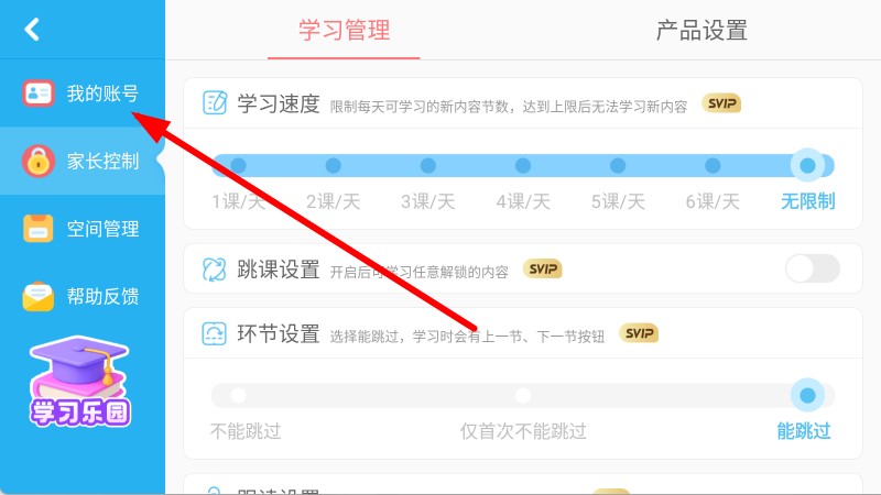 2、在学习管理页面点击我的账号,进入账号中心页面。