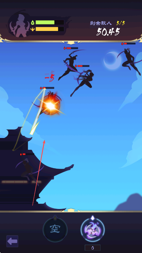 2、当敌人出现时,点击屏幕右下方技能按钮,释放技能攻击敌人。
