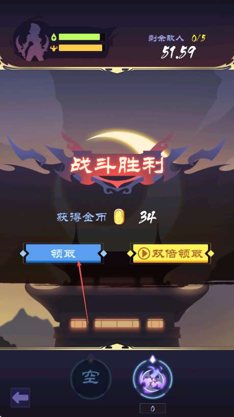 4、成功击败所有敌人后,点击领取按钮,获取战斗奖励金币。