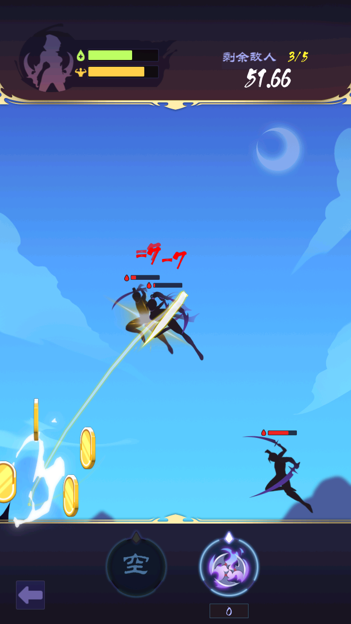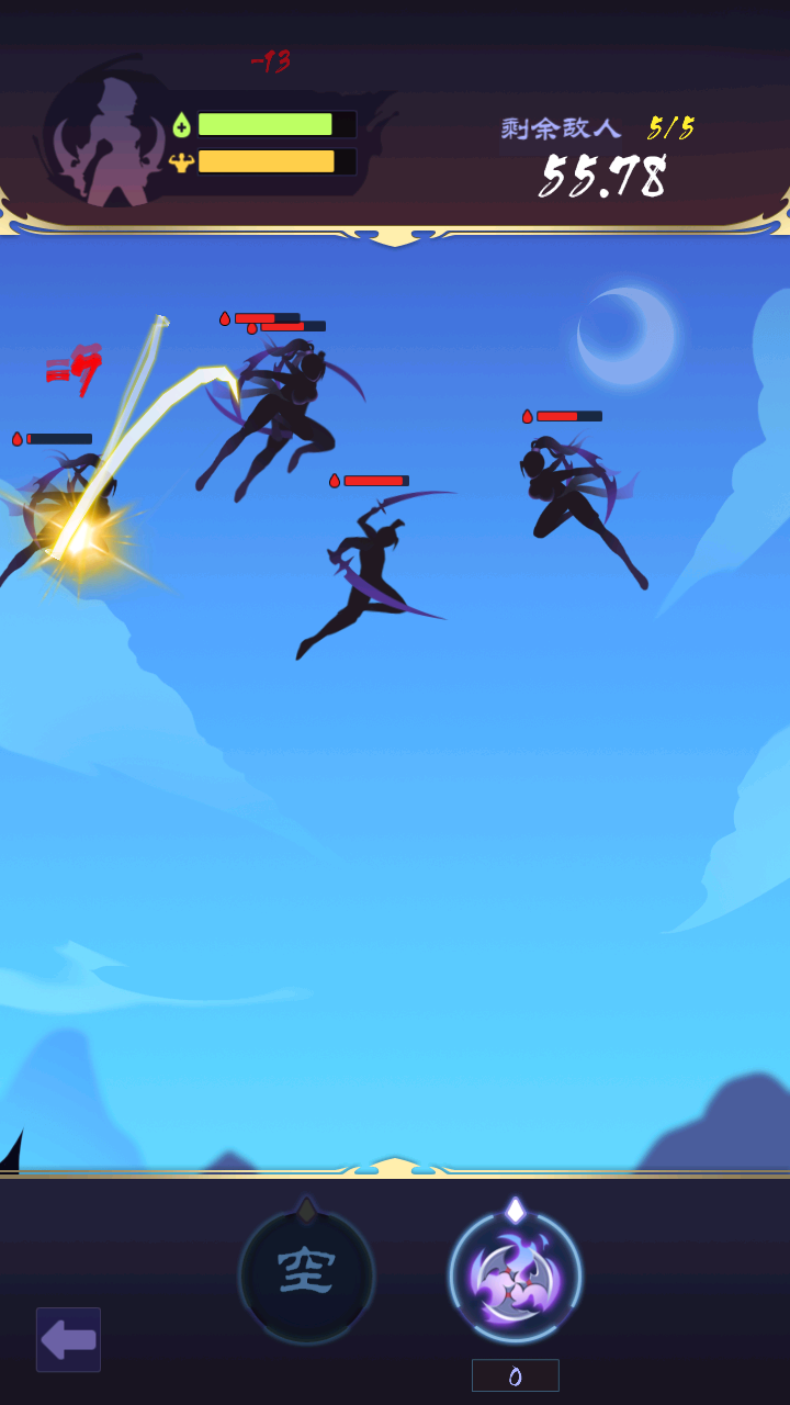 1、基础战斗操作:通过虚拟摇杆控制移动,点击攻击按钮进行基础挥刀,滑动技能图标释放对应技能,灵活运用闪避躲避敌人攻击。