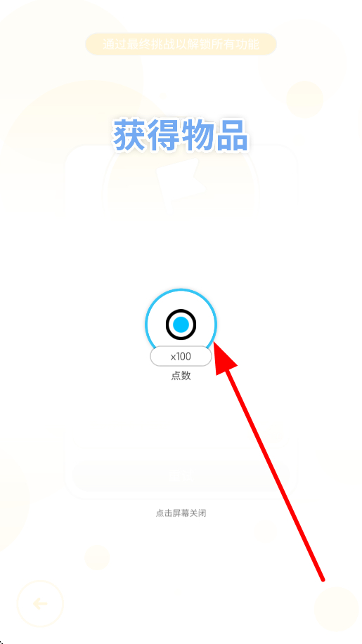 4、最后完成挑战后,会显示获得物品的界面,可获取点数等物品,这些物品能用于解锁的游戏歌曲,之后可继续参与其他挑战。
