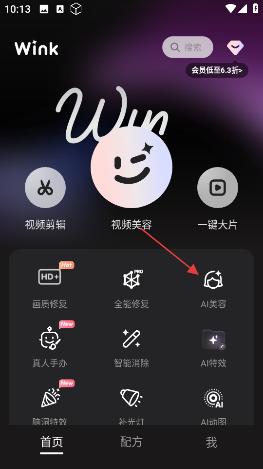 1、在Wink首页,点击AI美容,进入素材选择页面。