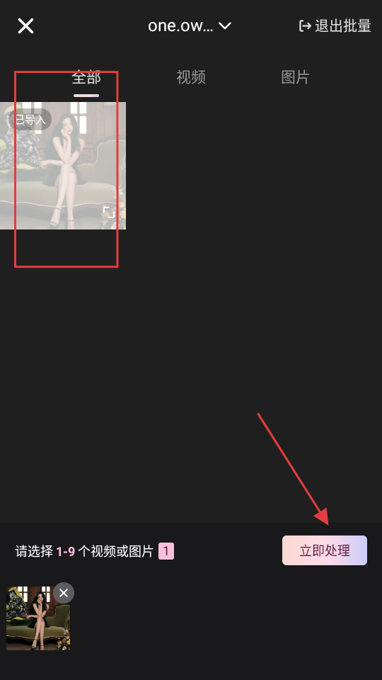 2、在素材选择页面,选择要处理的图片,点击立即处理,进入图片美容编辑页面。
