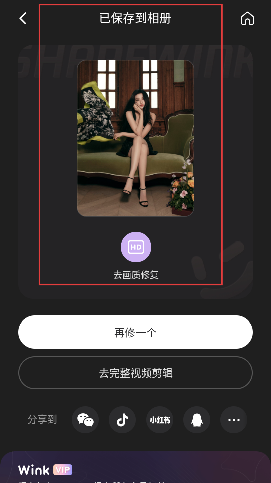 4、保存成功后,页面会显示已保存到相册,可进行后续分享等操作。