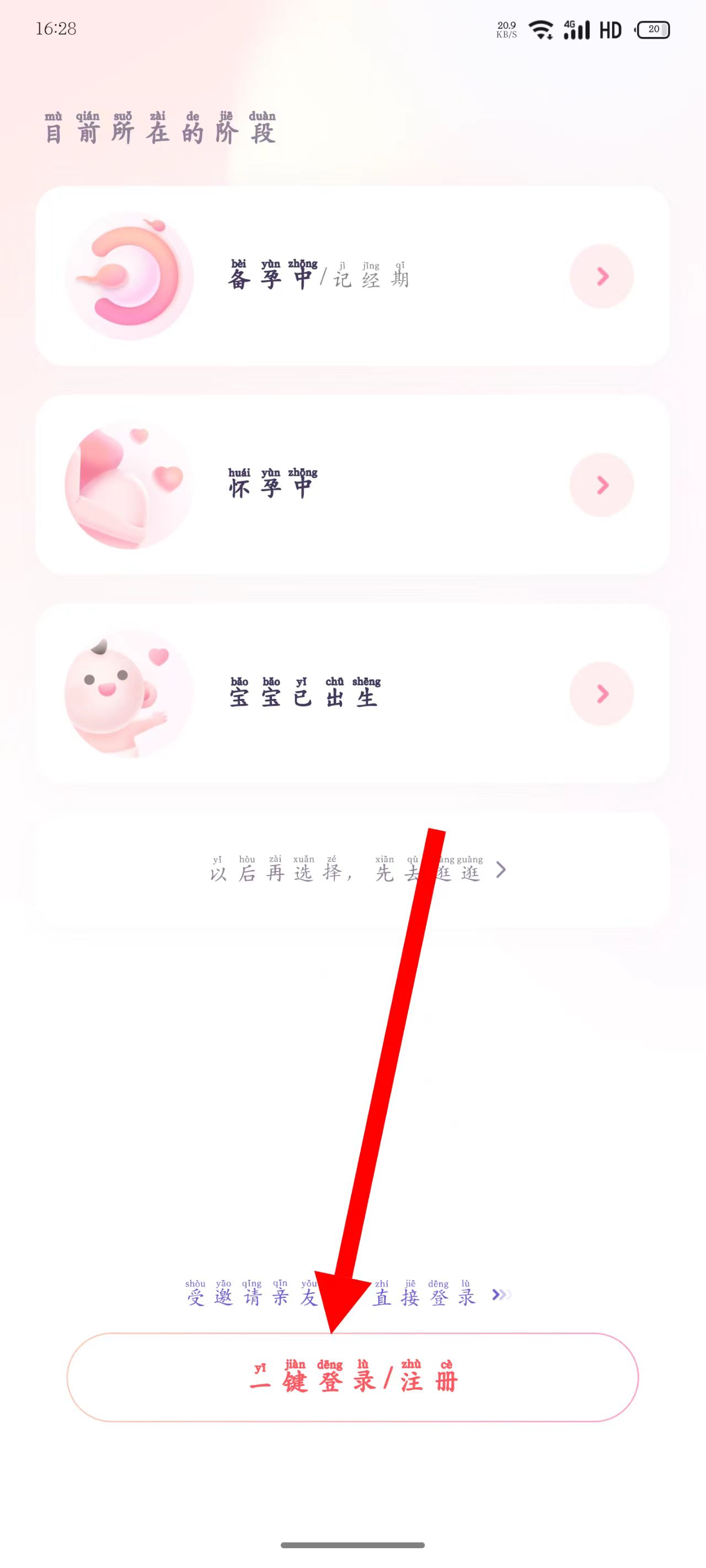 2、在页面,点击下方一键登录注册。