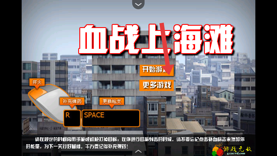 1、在游戏开始的页面,点击开始游戏的按键,观察补充弹药,开火的按键,玩家需在此处规划初始的射击策略。