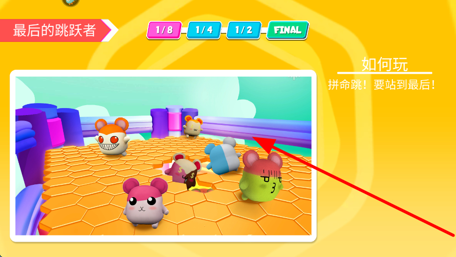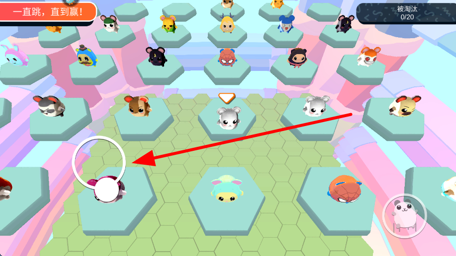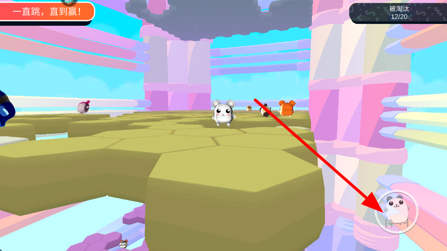 4、点击右下角的跳跃按钮,让角色进行跳跃,躲避危险区域,同时也要注意其他对手的动态,避免被干扰,努力成为最后的跳跃者。