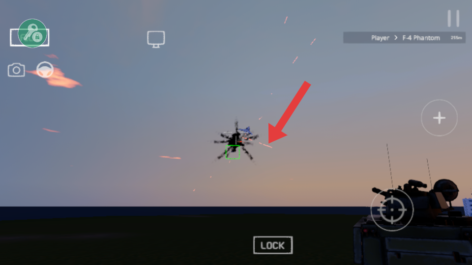 2、锁定并攻击空中的F-4 Phantom战机,击中后产生爆炸特效,消灭战机可积累分数,提升坦克战斗成果。