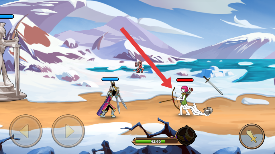 3、与敌方弓箭手角色战斗,通过攻击可对其造成了伤害,逐步削弱了敌方的战力,赢得了战斗的优势。