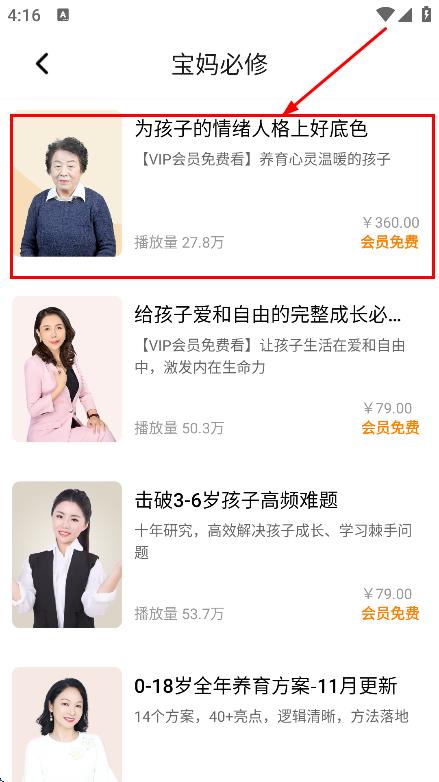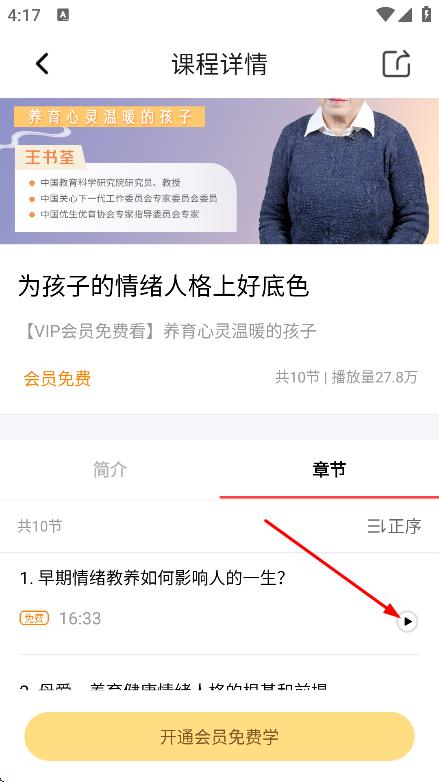 2、点击课程,如为孩子的情绪人格上好底色,进入课程详情页面。