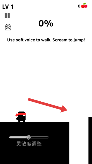 1、声控基础操作:进入游戏后,角色会自动向前移动,玩家需通过吼叫让角色高跳躲避“坑”状障碍,通过耳语控制角色缓慢前移调整位置,避免掉落陷阱。