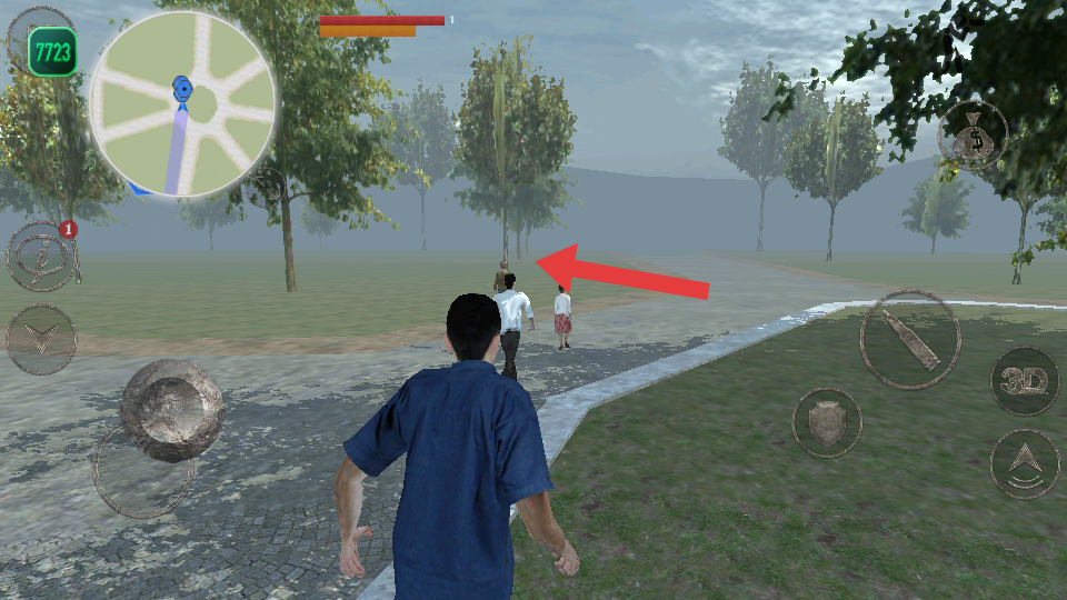 2、操控角色在公园道路上移动,追击目标,通过移动可接近敌人或目标地点,完成相应的游戏任务。