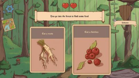 1、在冒险决策游戏中,遇到林中农民狩猎的场景,选择和他一起狩猎可获得弓箭道具,道具在后续冒险用于远程攻击。