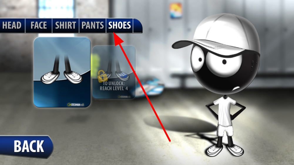 2、有头部、面部、上衣、裤子、鞋子等分类选项选择喜欢的装扮物品,打造出独特的火柴人形象,部分装扮需达到指定等级才能解锁。