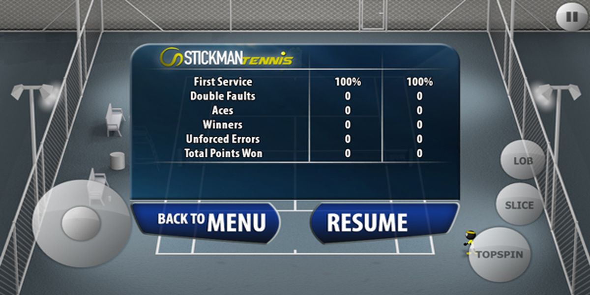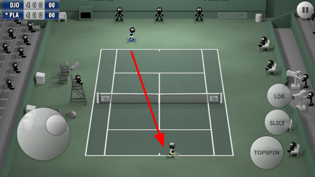 4、操控火柴人在球场上移动,根据对手的击球情况,选择使用上旋、切削等击球方式,与对手展开网球对决,争取赢得比赛胜利。