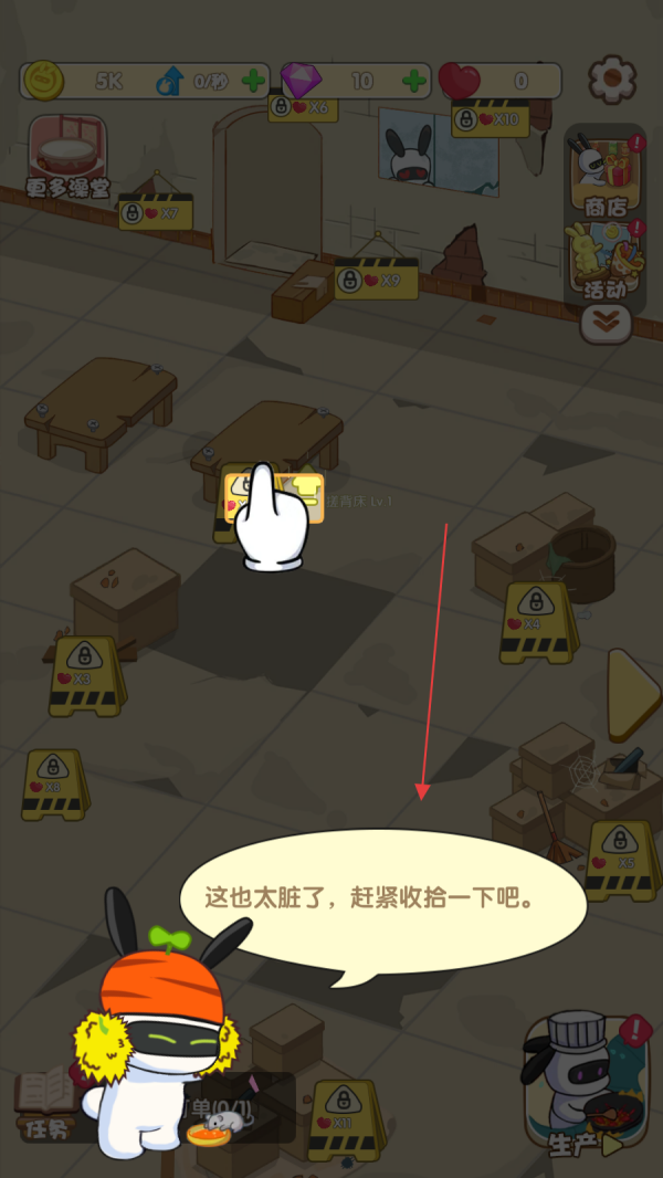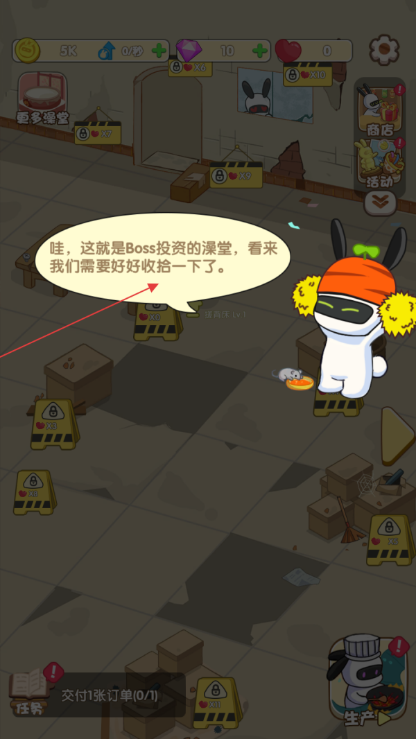 1、需要收拾Boss投资的澡堂这一核心任务,接着目光转向澡堂内部,将散落的洗浴用品、杂物逐一拾起,按照类别归置到对应的储物架或收纳区域,让澡堂空间初步恢复整洁有序。
