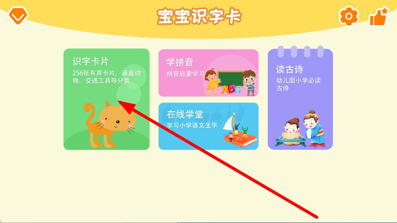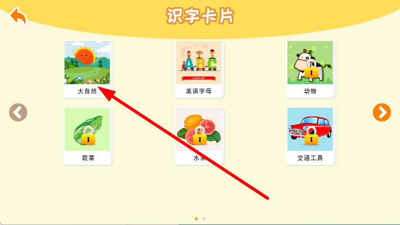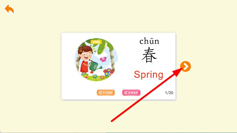 3、可看到识字卡,点击卡片右侧箭头可切换下一张。