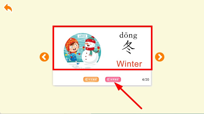 4、还能点击卡片下方中文发音,英语发音按钮,听取对应发音,帮助学习汉字及英语。