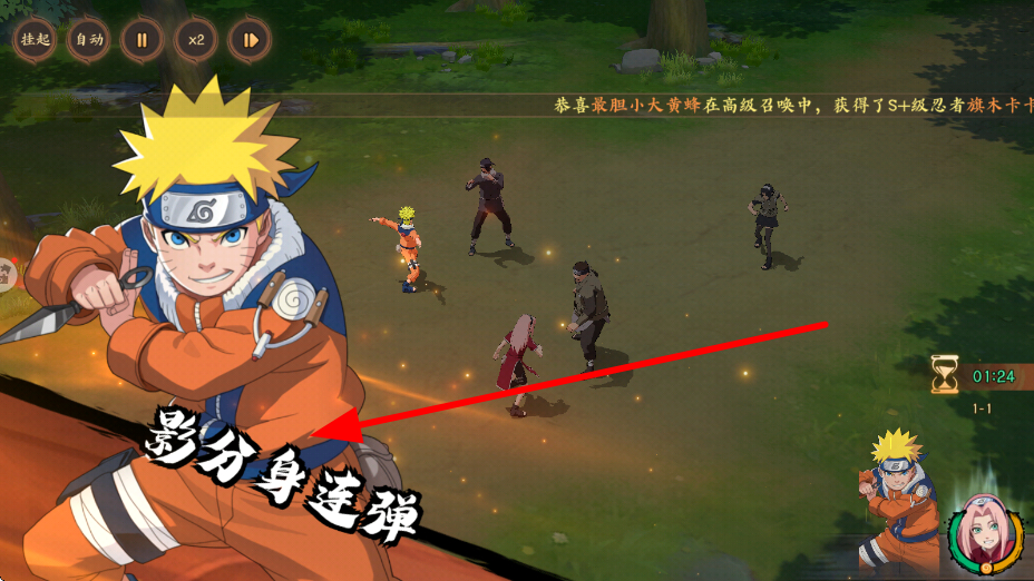 3、战斗过程中,忍者会自动或通过操作释放技能,像影分身连弹这类强力技能,能对敌人造成大量伤害,助力战斗推进。