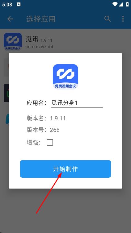 3、在应用分身设置弹窗中,点击开始制作,进入安装分身页面。