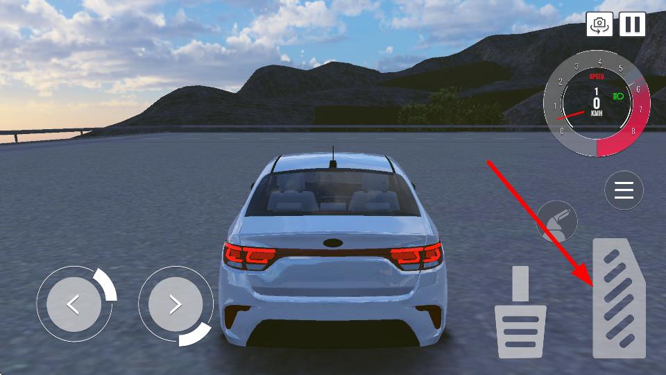 2、驾驶车辆时,点击右侧油门按键可控制车辆加速,这是在道路上行驶、提升了车速的基础操作。