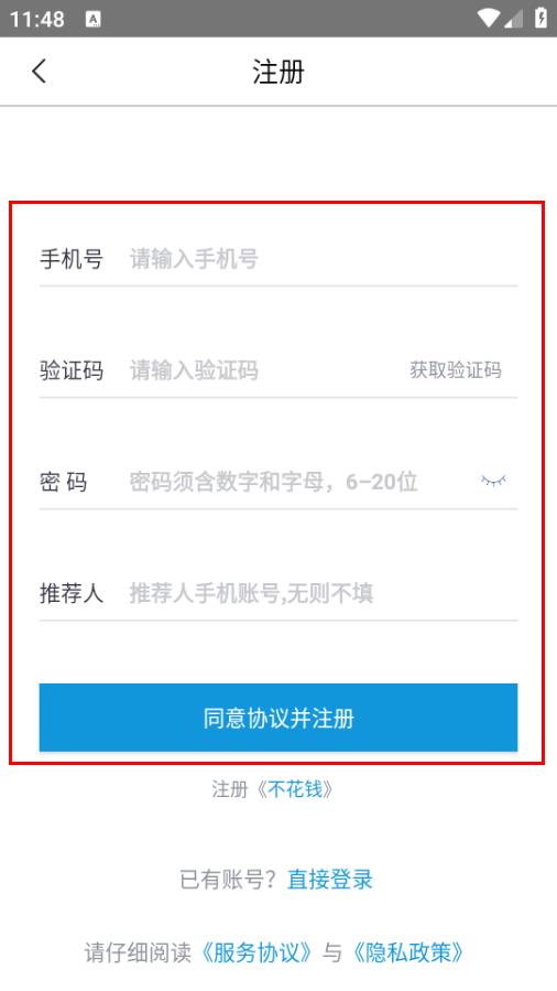 4、在注册页面,输入信息点击同意协议并注册,完成注册。