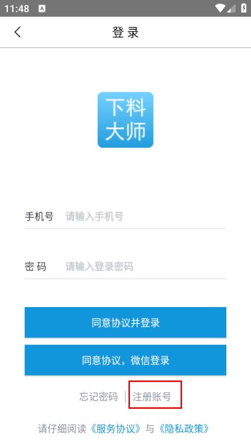 3、在登录页面,点击下方的注册账号,进入注册页面。