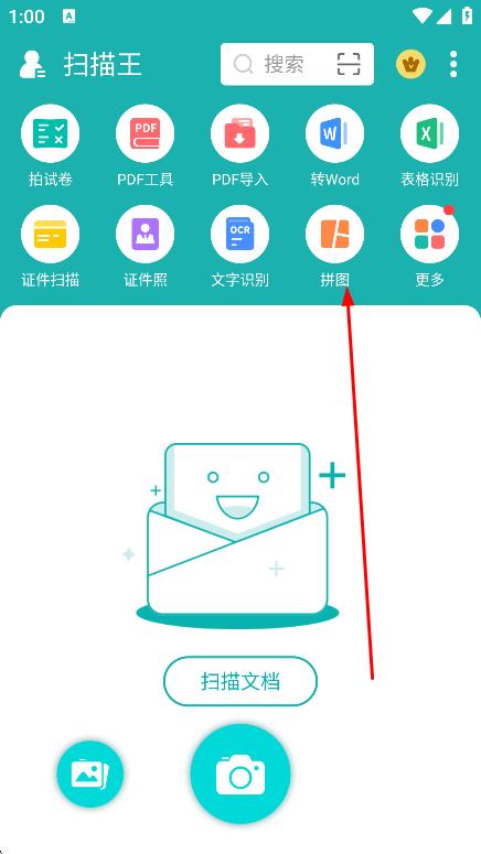 1、在扫描王主界面,点击拼图,进入选择文件页面。