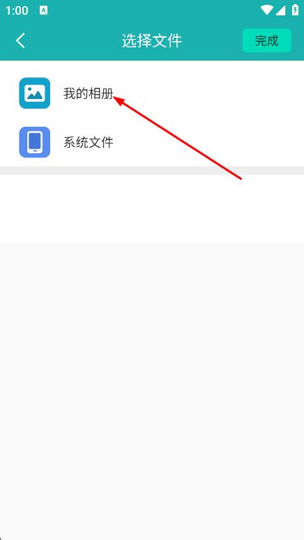 2、在选择文件页面,点击我的相册,进入相册选择图片页面。