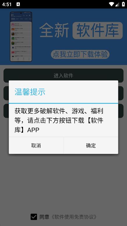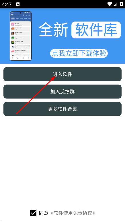 1、勾选同意软件使用免责协议后,点击进入,进入软件。