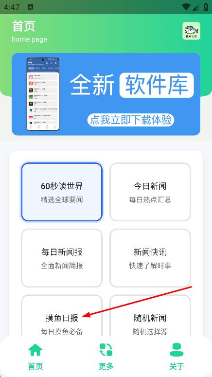 3、在软件主界面,点击摸鱼日报,可以生成摸鱼日报。