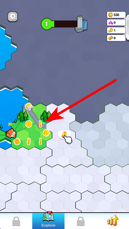 3、在地图探索过程中,跟随指引点击相应的建设或探索点位,推进区域的开拓进程,逐步解锁新的地图区域,为建造更多建筑创造条件。