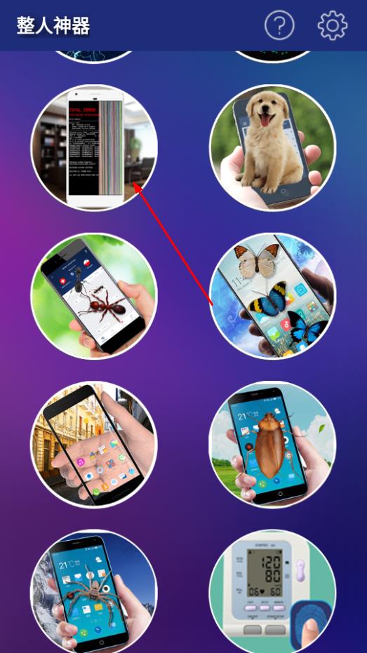 1、在整人神器主界面,选择想要使用的整蛊效果图标,进入对应整蛊设置页面。