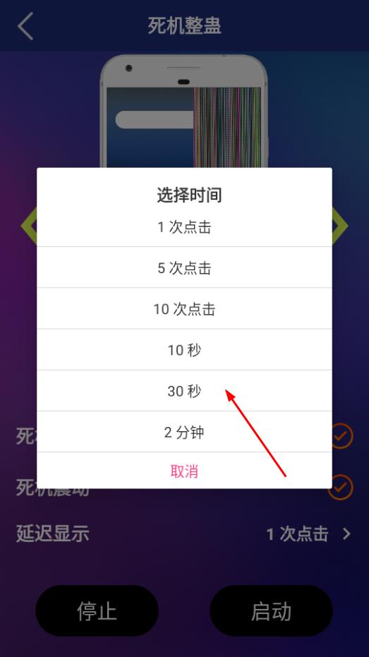 3、在弹出的选择时间列表中,选择延迟时间,比如30秒。