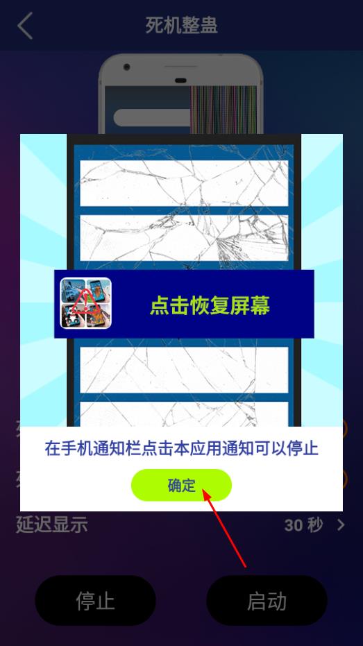 4、设置好延迟时间后,点击启动按钮,即可启动死机整蛊效果。