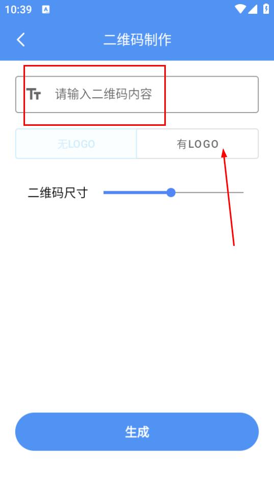 2、在二维码制作页面,在输入框输入二维码内容,再点击有LOGO。
