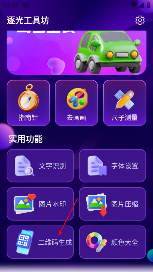 1、在逐光工具坊主界面,点击二维码生成,进入二维码制作页面。