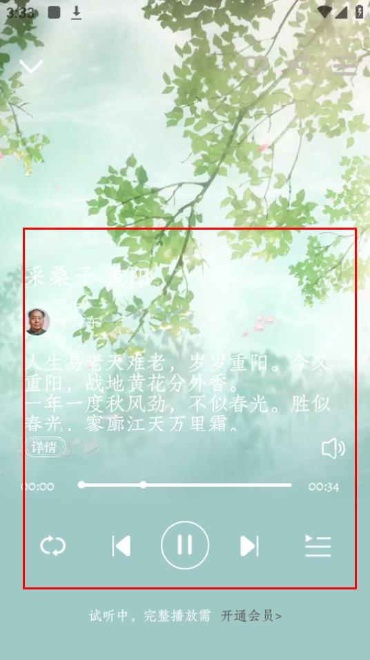 4、点击后即可进入采桑子重阳播放界面,收听该诗词音频。