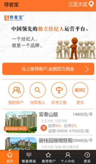 荐客宝帮助全国一手二手置业顾问、投资理财顾问、导游、出租车司机等任何人,将手中空闲的客户资源,变废为宝