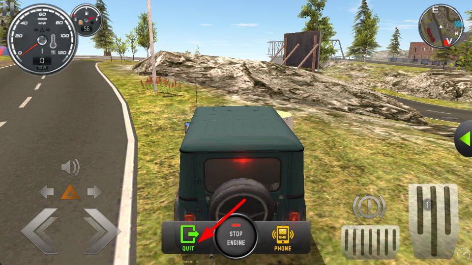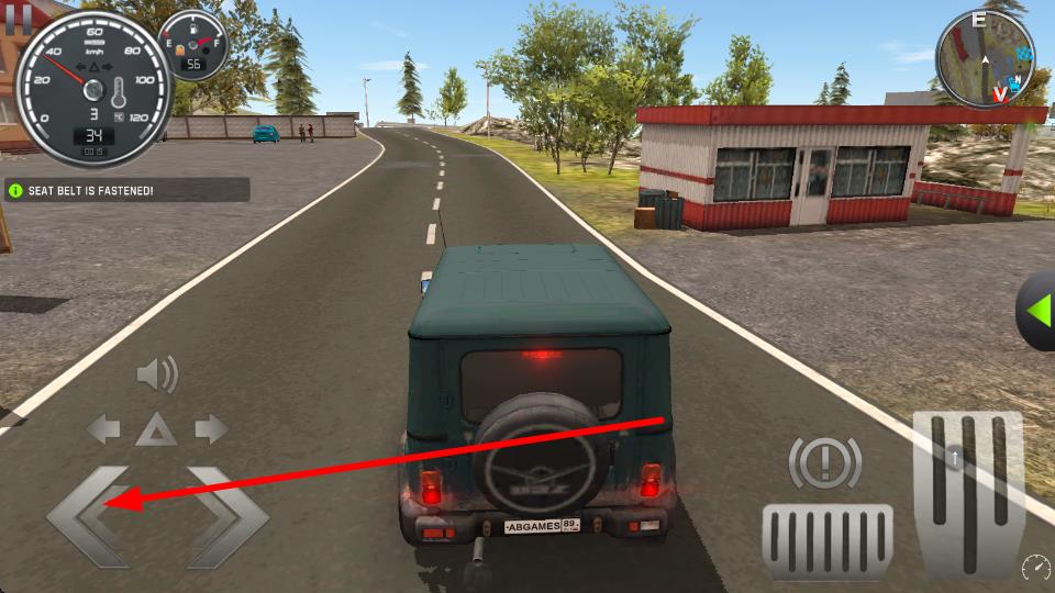 2、点击右侧油门按键,可提升车辆行驶速度,道路上快速前进,注意控制速度适应路况。