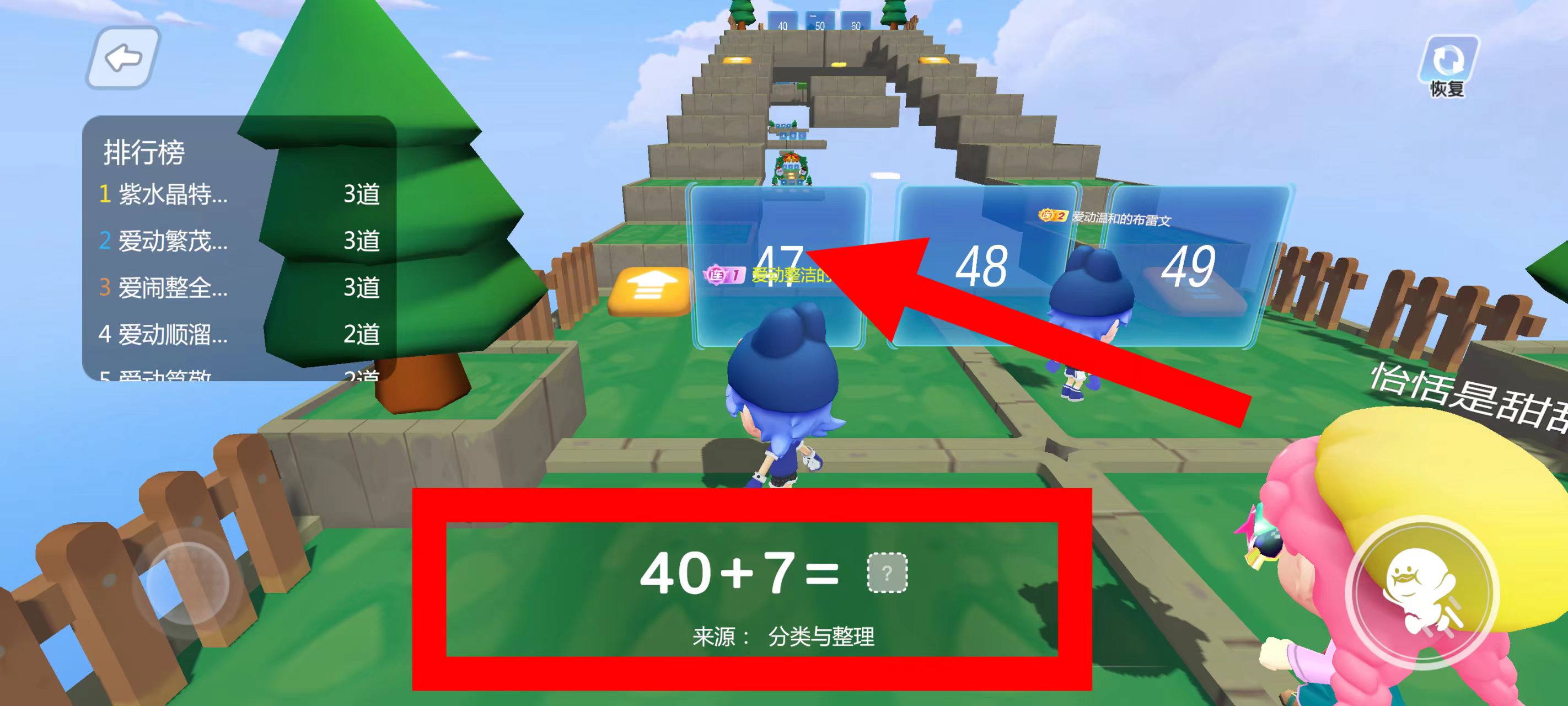 3、在游戏场景中,会出现数学题目,选择或输入答案进行答题。