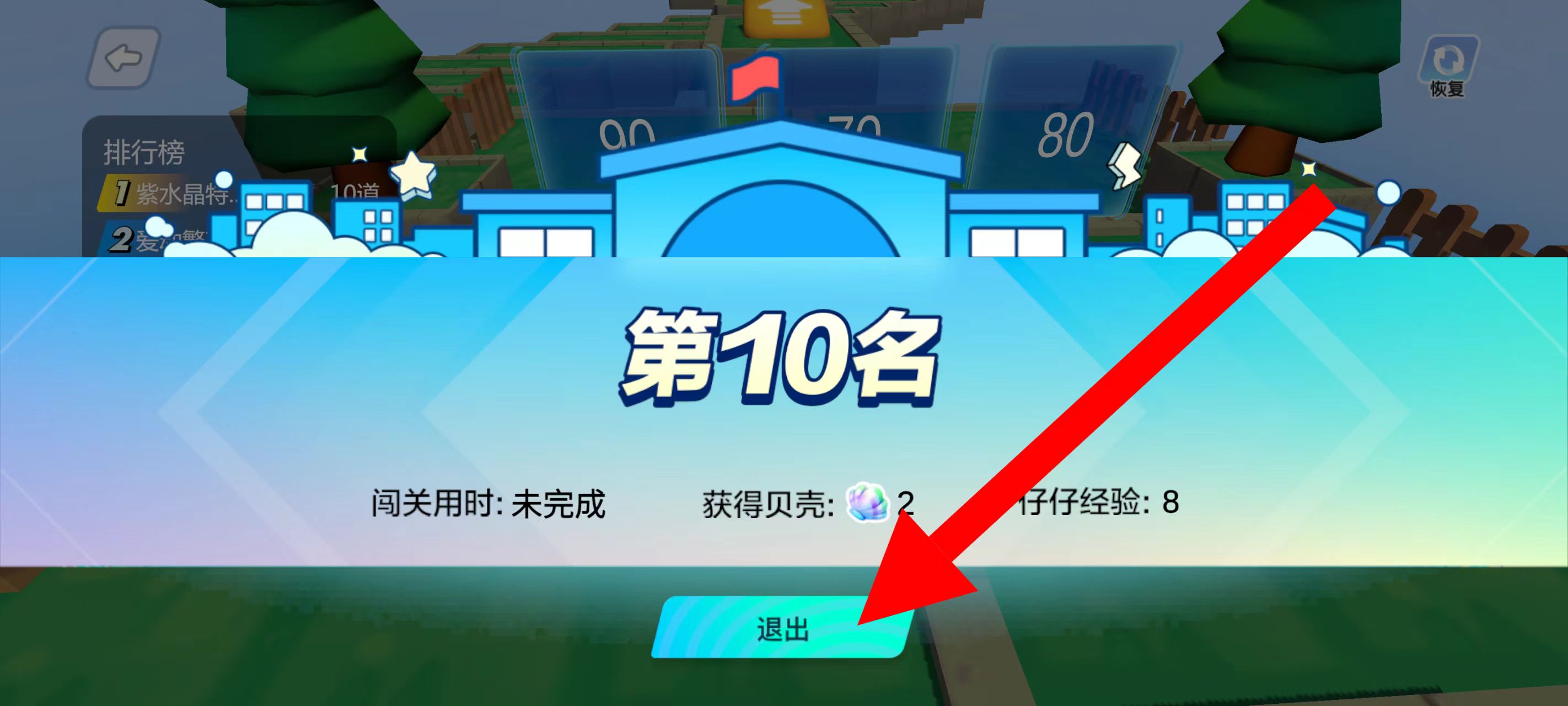4、完成答题后,查看排名和奖励情况,点击退出按钮返回其他界面。