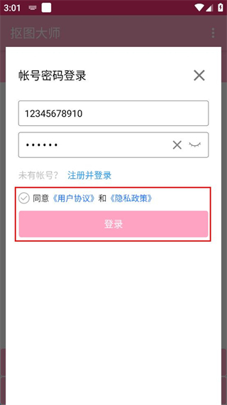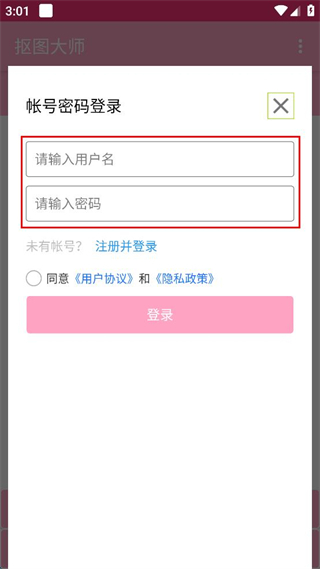 3、在登录界面,输入用户名和密码,勾选同意用户协议和隐私政策。