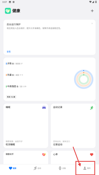 1、打开健康类应用,点击底部我的选项,进入个人中心页面。