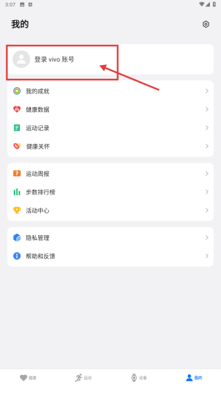 2、在个人中心,点击登录vivo账号选项,进入vivo账号登录界面。