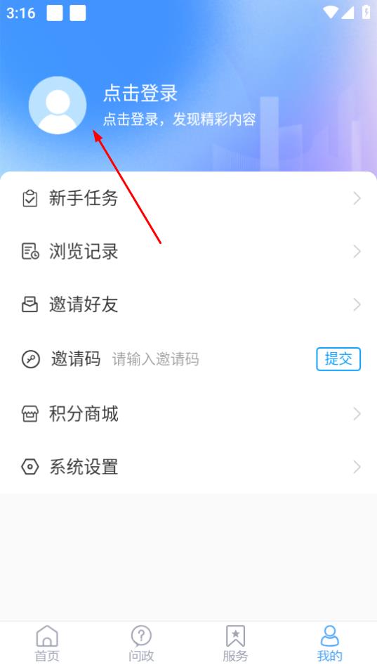 2、在我的页面,点击点击登录,进入用户登录界面。