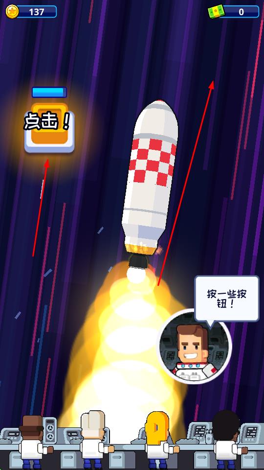 4、火箭发射时,点击点击按钮等操作,助力火箭顺利发射升空,完成发射任务。