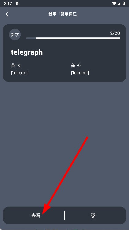 4、点击查看查看单词的发音等详细内容,遇到生疏单词点击收藏图标加入生词本。