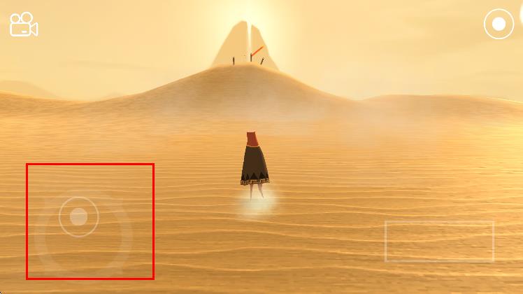 2、在沙漠场景中,通过左侧的虚拟摇杆操控角色移动方向。